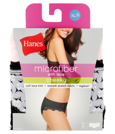 Hanes Cheeky Microfiber Panties With Lace, Women, XL, Assorted (2 pack)