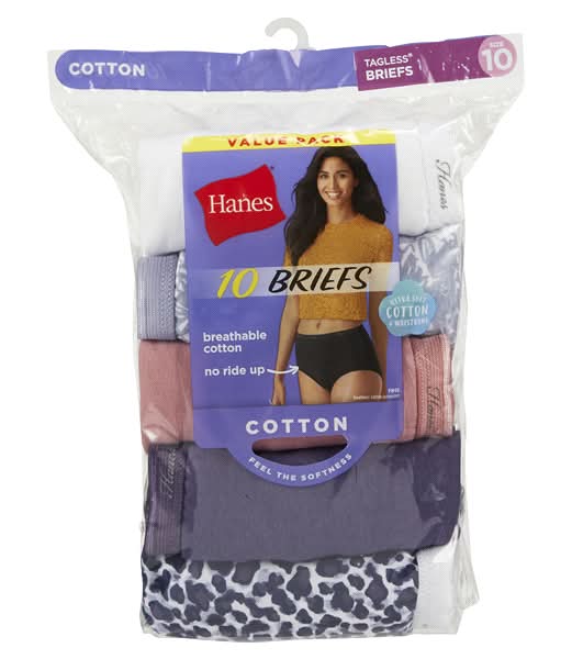 Hanes Cotton Brief Panties, Women, 10, Assorted (10 ct)
