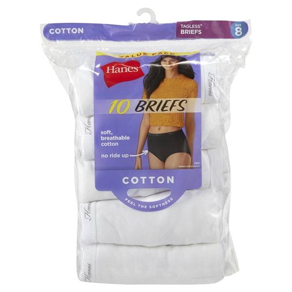 Hanes Ladies Cotton Tagless Briefs, 8, White (10 ct)