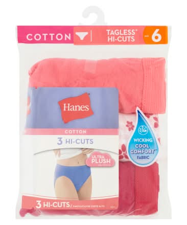 Hanes Cotton Tagless Hi-Cuts Panties, 6, Multi (3 ct)