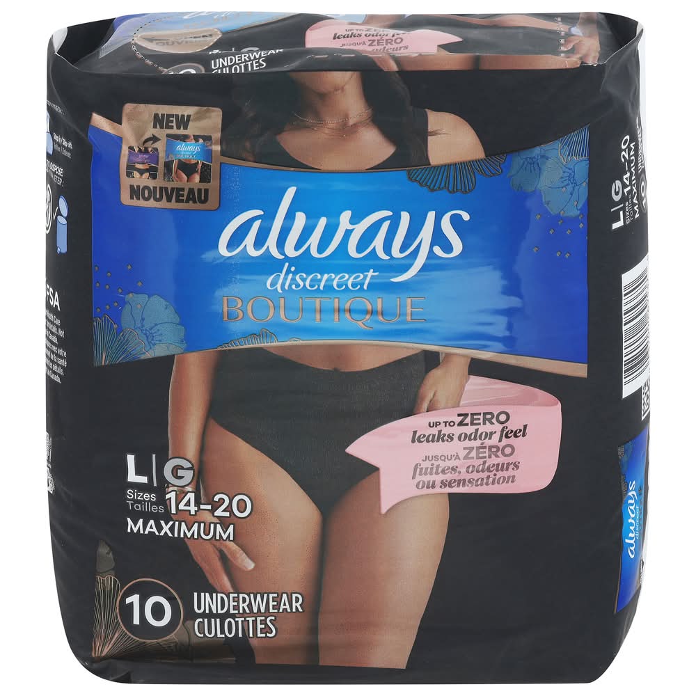 Always Boutique Maximum Low Rise Underwear, L (10 ct)