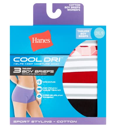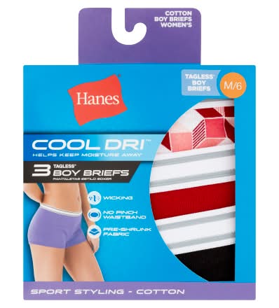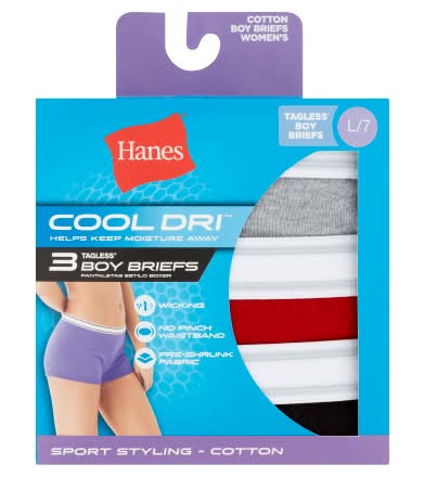 Hanes Cool Dri Cotton Women's Tagless Boy Briefs, M/6, Black,Red,White,Grey,Pink (3 ct)