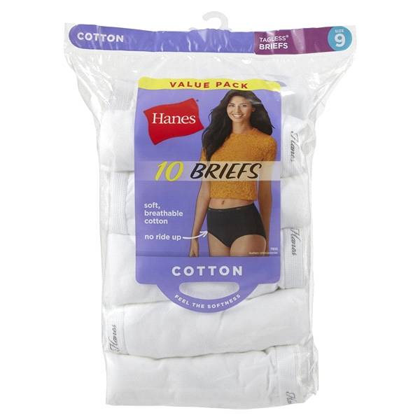 Hanes Cotton Brief, Women, 9, White (10 ct)