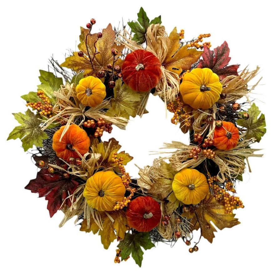 Party City Glitter Velvet Pumpkin Vine Fall Wreath, 20 in, Multicolor