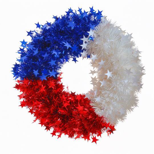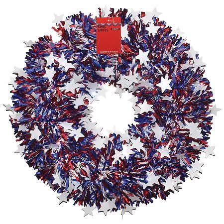Stars & Stripes Tinsel Wreath, 16 in, Assorted