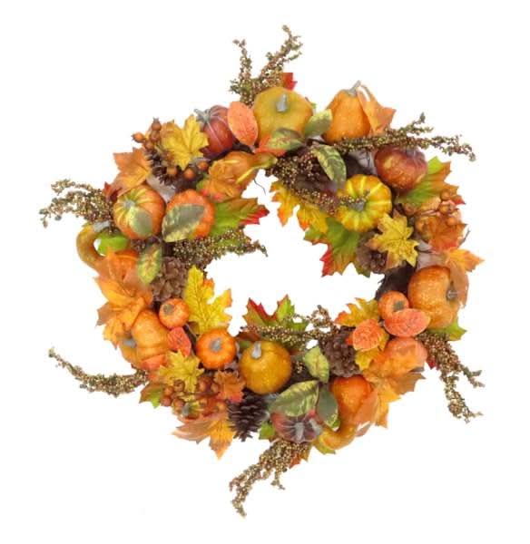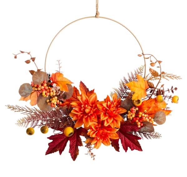 At Home Half Fall Wreath, 20 in, Orange
