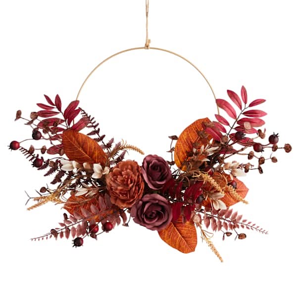 At Home Fall Rose Half Wreath, 20 in