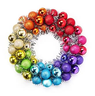 Winter Wonder Lane Rainbow Ornament & Tinsel Wreath, 16"