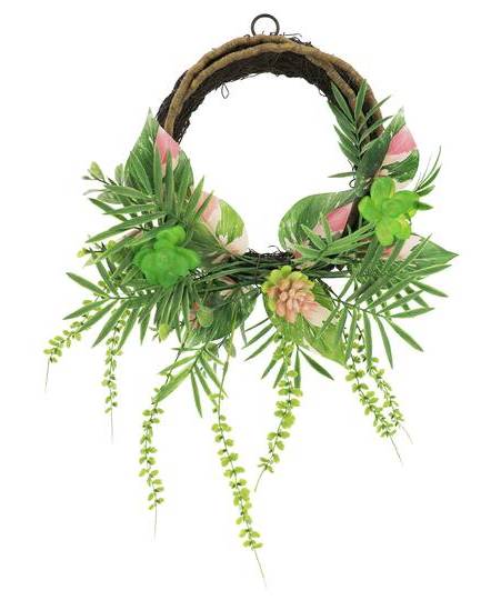 Ashland Succulent & Palm Mixed Half Wreath, 22 in, Pink-Green
