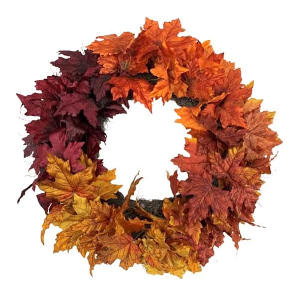 At Home Fall Mix Maple Leaves Wreath, 22 in, Orange