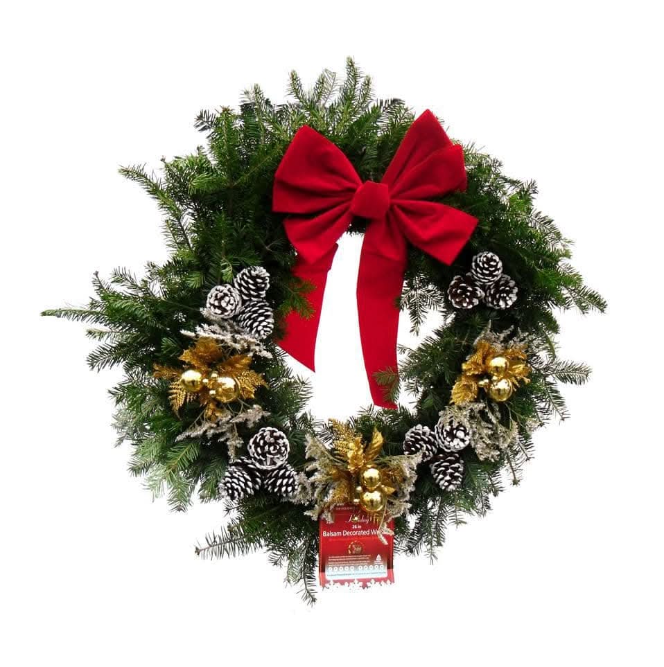 Holiday Tree Farms Inc Fresh Cut Mixed Noble Fir Wreath With Bow, 30 In